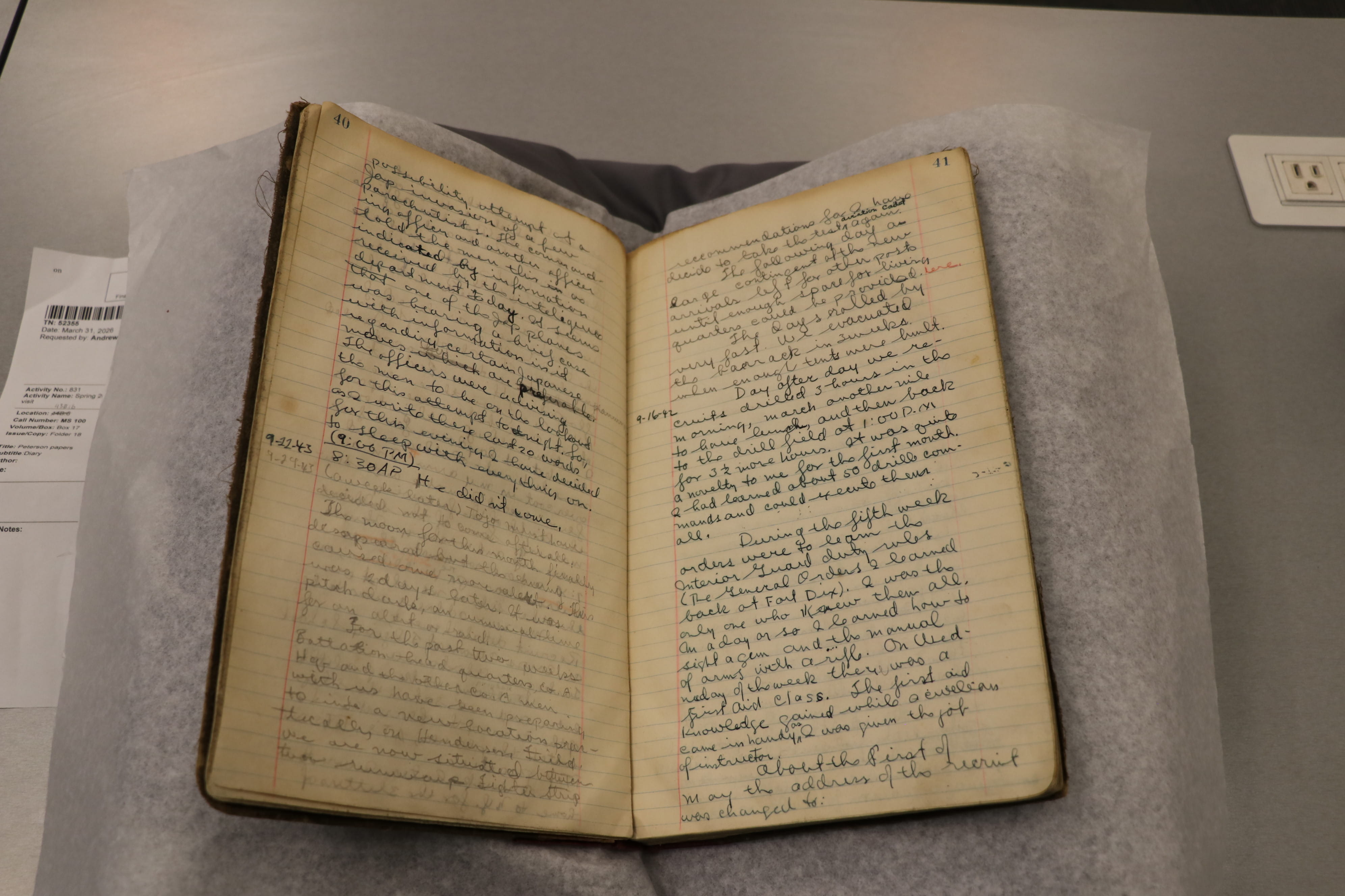 The tour then moved to the fourth floor to view a curated selection of Tuskegee materials housed in Special Collections and University Archives. Andrew Lippert provided historical context for these items, highlighting the origins of the collection which began under the leadership of former University Librarian Ruth Jackson.