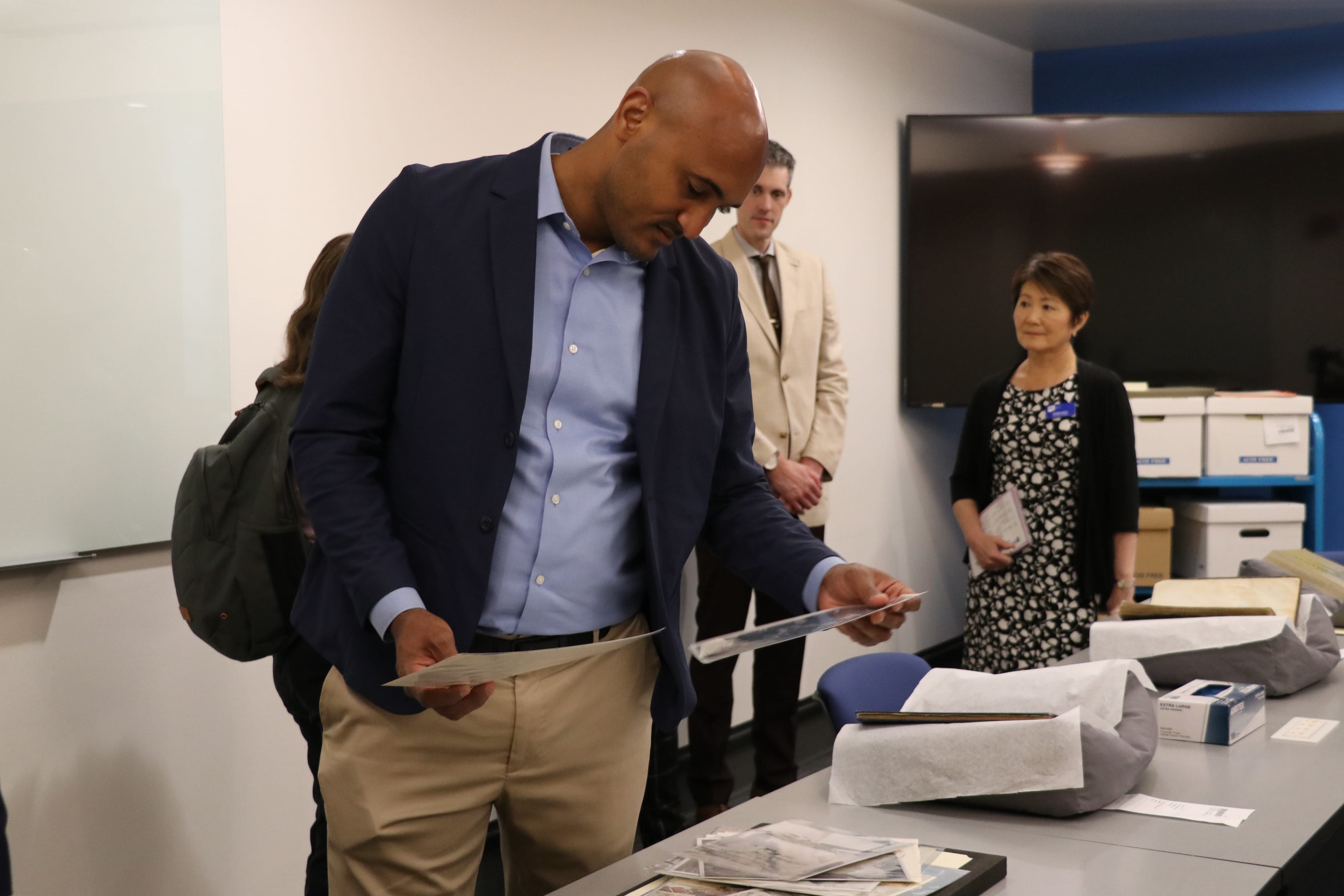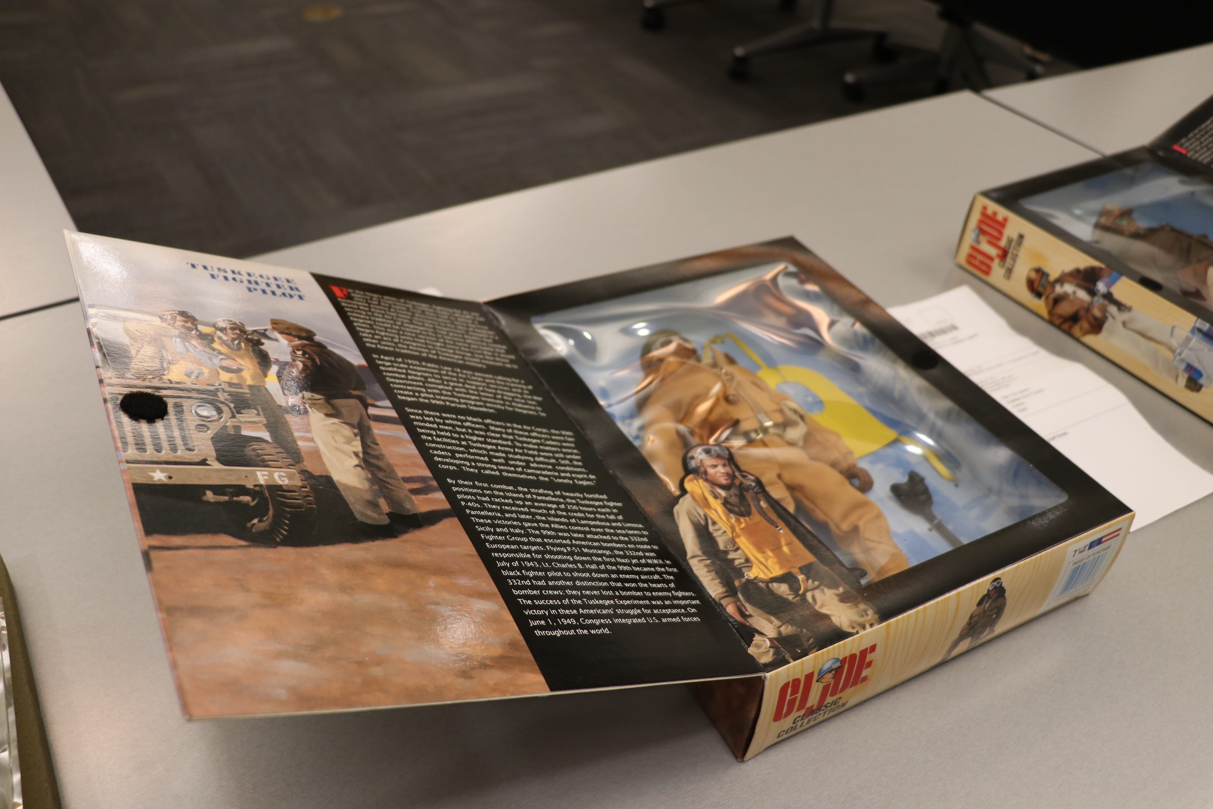 Among the items that drew Congressman Figures' attention most were the personal diary entries, which he found to be an intimate and powerful glimpse into everyday life during the period. He also spent considerable time with photographs from the collection, including a wedding photo from the 1940s. The Congressman noted professional wedding photography was a luxury few could easily afford at the time, and even less so for many Black families, making its survival in the historical record all the more meaningful. Rounding out the breadth of the collection were unexpected items like Tuskegee Airmen GI Joe action figures, underscoring just how wide-ranging our Tuskegee Collections are.