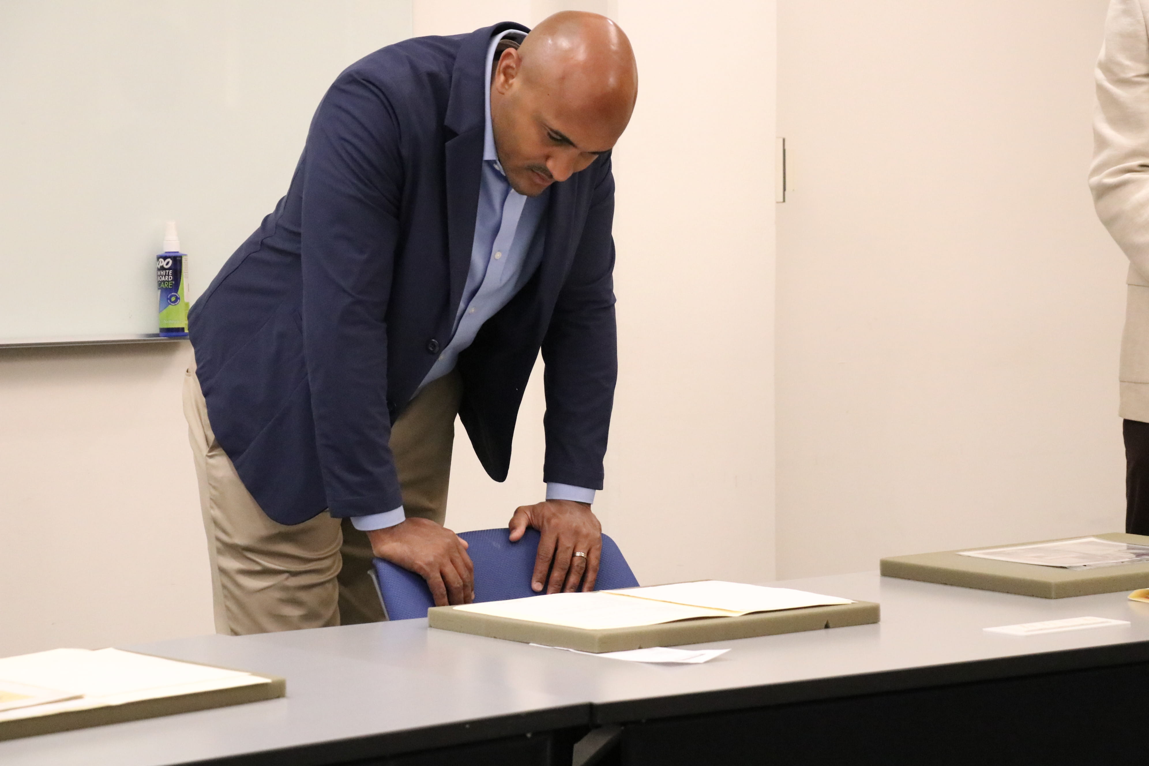 The visit was coordinated by UCR’s Senior Director of Federal Relations Kathleen Eiler and her team in the Office of Governmental & Community Relations. Upon his arrival at the Tomás Rivera Library, the Congressman was greeted by University Librarian Mihoko Hosoi, Deputy University Librarian & Associate University Librarian for Content and Discovery Tiffany Moxham, and Special Collections Processing Archivist Andrew Lippert.